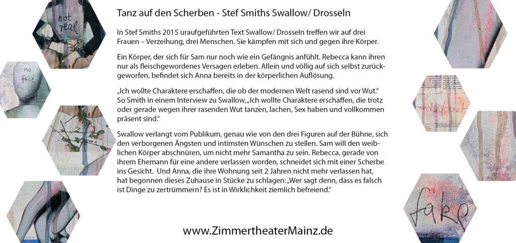 StückeSpielzeit 2023-2025 – „Allesfresser“ von Erpho BellPrgrammheftSpielzeit 2019/2020 – „Swallow / Drosseln“ von Stef SmithProgrammheftSpielzeit 2018/2019 – „Wetterleuchten“ von Daniel CallProgrammheftSpielzeit 2017/2018 – „Doch die Mutter spricht, Mädel tu das nicht“ von Charlotte KeatleyProgrammheft